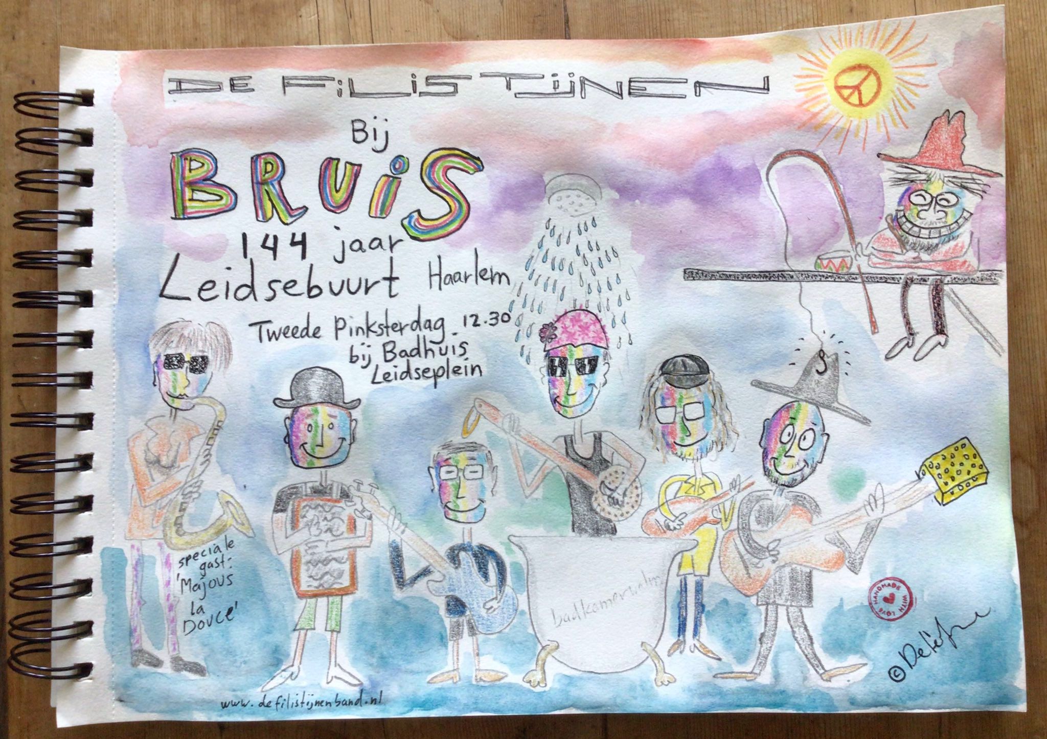 wijkfeest ‘bruis’, leidsebuurt, Haarlem – 20 mei 2024 Locatie: badhuis, leidseplein – Haarlem – ← De Filistijnen >> Plantjesmarkt Indische buurt Haarlem - 18 mei 2024 De Filistijnen >> Ter gelegenheid van Braderie Frankrijklaan Haarlem - 6 juli 2024 → Foto: Mariëtte Bosch Tekening: PM Delèfre